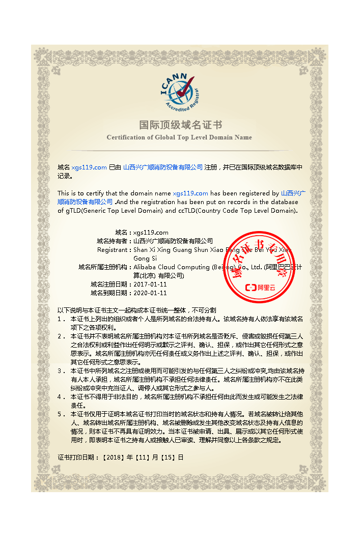 歡迎訪問山西興廣順消防設備有限公司網(wǎng)站(www.xgs119.com),本公司承諾所銷售的產(chǎn)品均為原廠標貨,請您放心購買!
