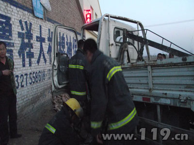貨車撞民房駕駛員被困 屯留消防巧妙救援[圖]